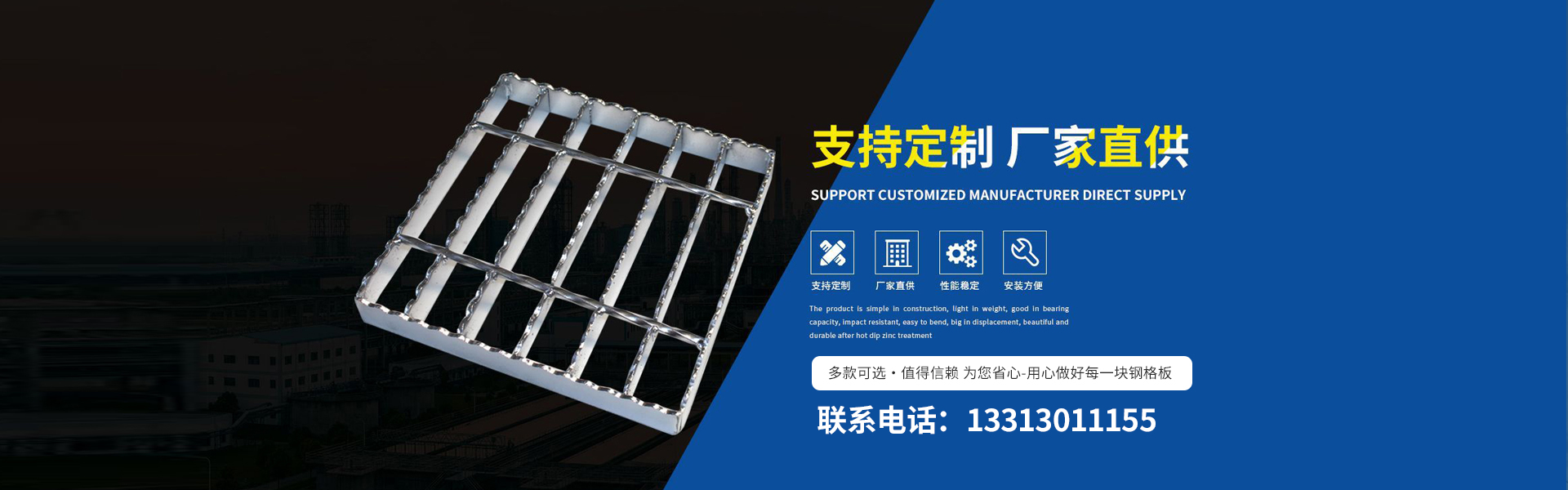公司產(chǎn)品有鋼格板、踏步板、溝蓋板、鋼格柵板、等產(chǎn)品。對于客戶要求的不同工作環(huán)境,承載力、跨度、形狀和顏色,提供相應設計方案及成本控制。 我公司秉承“以客戶為中心,以低價高品質(zhì)為基礎,以客戶滿意為目標”的經(jīng)營理念,以優(yōu)惠的價格、好的技術設備來贏得用戶的信賴,衡水新超峰金屬網(wǎng)業(yè)制造有限公司熱誠歡迎廣大客戶光臨。 衡水新超峰金屬網(wǎng)業(yè)制造有限公司成立迄今,正是由于各界朋友們對于我們的持續(xù)支持與關懷,及本公司全體同仁辛勤的耕耘與付出,使公司持續(xù)發(fā)展與茁壯成長。展望未來,我公司人懷著感恩之心,更加追求...